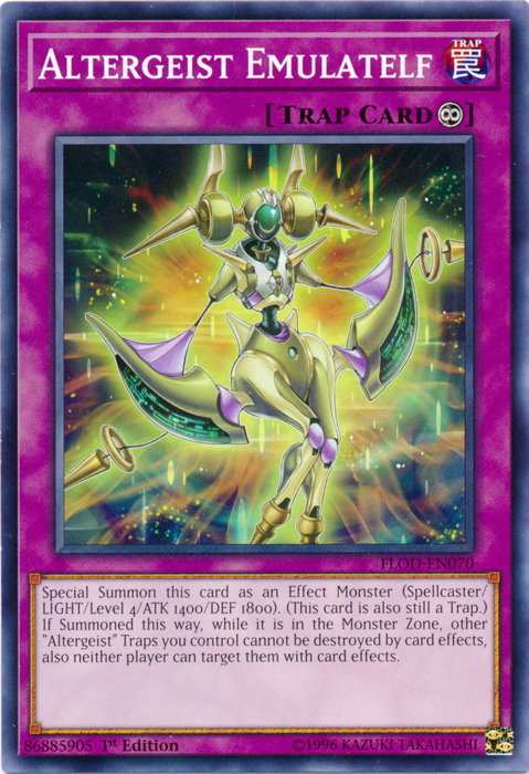 Special Summon this card as an Effect Monster (Spellcaster/LIGHT/Level 4/ATK 1400/DEF 1800). (This card is also still a Trap.) If Summoned this way, other "Altergeist" Traps you control cannot be destroyed by card effects, also neither player can target them with card effects.